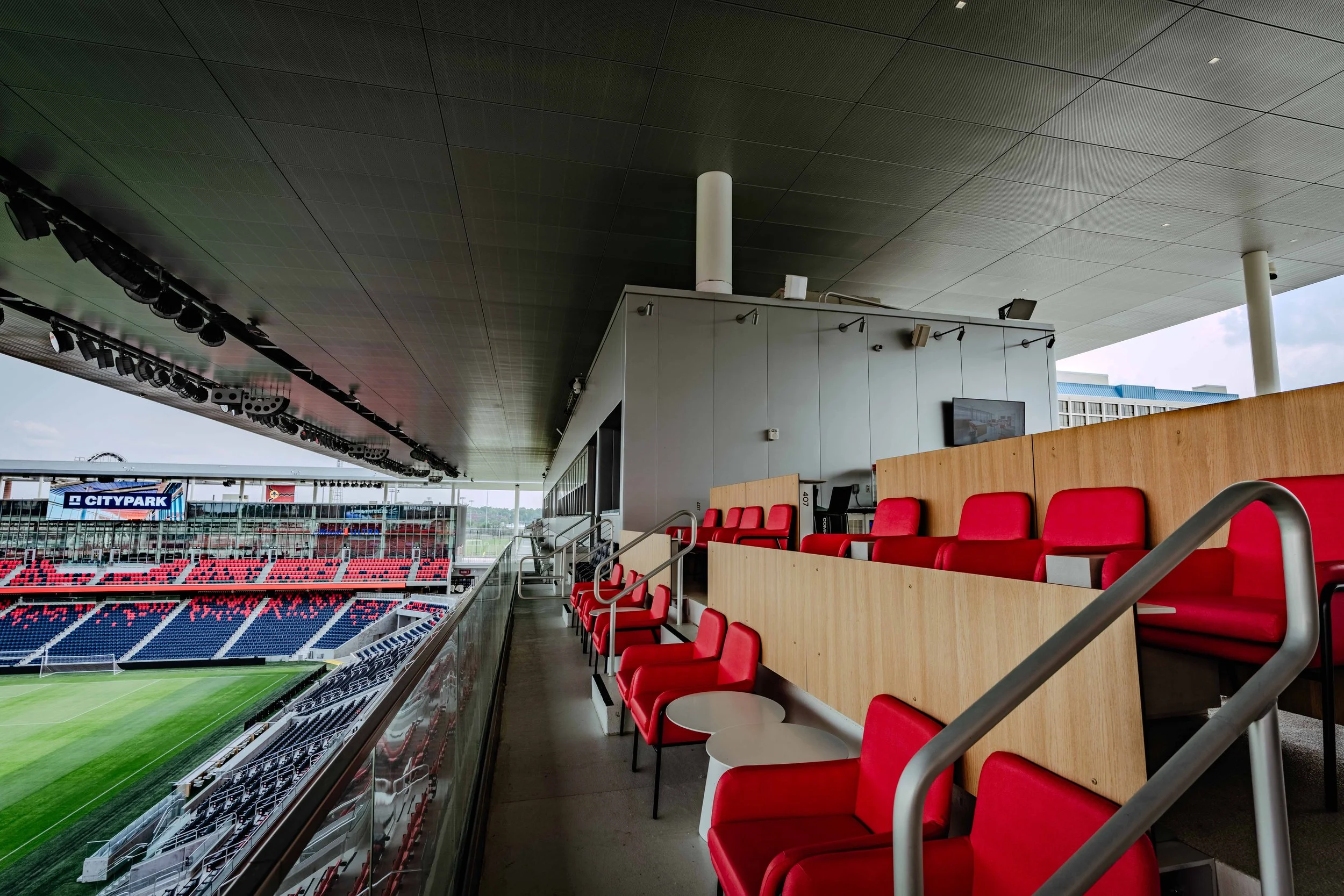 Elevated in every way. Perched atop Energizer Park, CITY View Terrace offers stunning sightlines of the pitch and the St. Louis skyline — all in a rooftop bar-style setting. With all-inclusive food and drinks, waitstaff service, and flexible seating options, it’s the perfect space to impress clients or kick back with friends in style. See below for more details.